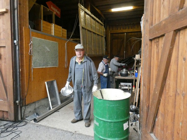 Bei der Abrechnung ergibt dies einen deutlich höheren Ertrag als wenn gemischte Metalle abgegeben werden. Das Trennen der Gegenstände von Plastikteilen und legierten Teilen bedeutet aber einen grossen Arbeitsaufwand. Mit Trennscheiben, Hammern und anderen Werkzeugen sind die Männer voller Konzentration und vollem Einsatz an der Arbeit. Der Znüni und das Mittagessen werden denn auch sehr geschätzt. Dieses Jahr wurde der Znüni als Dank für die saubere Sortierung von der Firma Thommen spendiert.