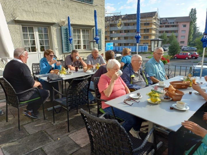 Um 8.00 Uhr gings dann los. Die Fahrt führte über die Autobahn ans Werdenberger Seeli zum Rest. Rössli, wo es Kaffee und sehr feine Gipfeli gab.