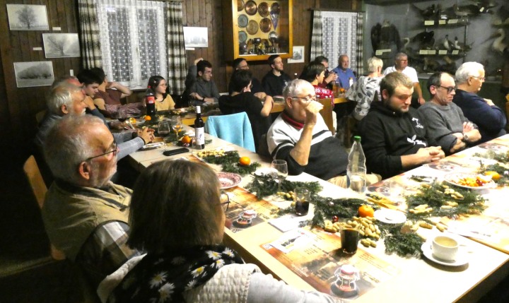 Die Anwesenden genossen den Samichlausabend im Vereinshaus mit feinem Essen und Geselligkeit. Es war ein schöner Jahresabschluss 2025 des Ornithologischen Vereins Thal.