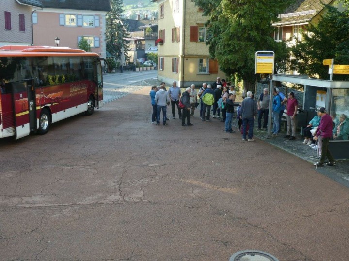 Nach einer regnerischen Nacht trafen wir uns bei wunderschönem Wetter am Samstagmorgen beim Postautoplatz. Ja wenn Engel reisen lacht der Himmel, der Carchauffeur Michel stand mit dem Car schon parat.