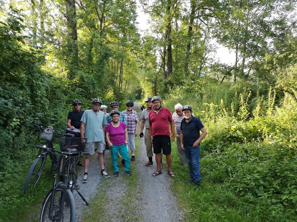 Am 26. Juli 2024 konnten die OV Mitglieder die Velotour wieder per Fahrrad durchführen, denn dieser Freitag war ein schöner, warmer Sommertag. Rassig führte uns der Präsident Ueli Kuhn vom Vereinshaus unter dem Rheinecker Bahnhof durch, dem Alten Rhein entlang in das Naturschutzgebiet des Eselschwanz in St. Margrethen. Im Naturschutzgebiet konnten die Wege wieder befahren werden, die in diesem Jahr wegen Hochwassers längere Zeit gesperrt waren. Hier wurde der erste Fotostopp gemacht. Weiter führte die Tour rund ums Bruggerhorn. Im Restaurant Schwanen in Höchst traf sich die Gruppe der Velofahrer mit denjenigen Mitgliedern, die den Weg von St. Gallen oder Oberegg mit dem Auto zurückgelegt hatten. Viele stärkten sich mit einem feinen Grill-