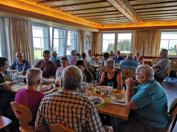 Am 19. August 2023 trafen sich die Altmetallsammler des Ornithologischen Vereins Thal auf dem St. Anton in Oberegg AI. Im Restaurant St. Anton wurde zuerst ein feiner Apero serviert. Um kurz vor 12 Uhr trafen auch diejenigen auf dem St. Anton ein, die den Weg unter die Veloräder genommen hatten. Nachdem auf der Terrasse mit dem schönen Ausblick ins Rheintal alle ihren Durst gestillt hatten, nahmen wir im Restaurant Platz. Das Team vom Restaurant St. Anton servierte uns ein feines Mittagessen. Bei geselligem Zusammensein verging die Zeit schnell. Ein Dessert durfte zum Abschluss aber nicht fehlen. Alle wählten aus der Dessertkarte ein feines Glacé oder einen leckeren Kuchen.