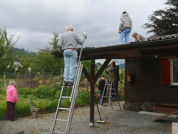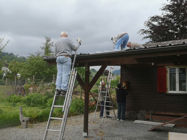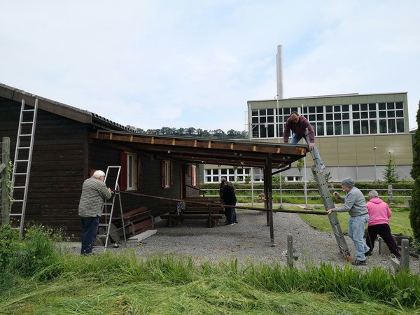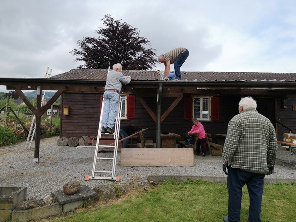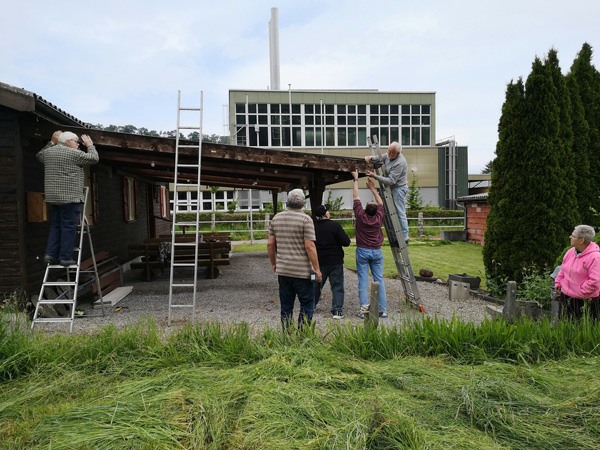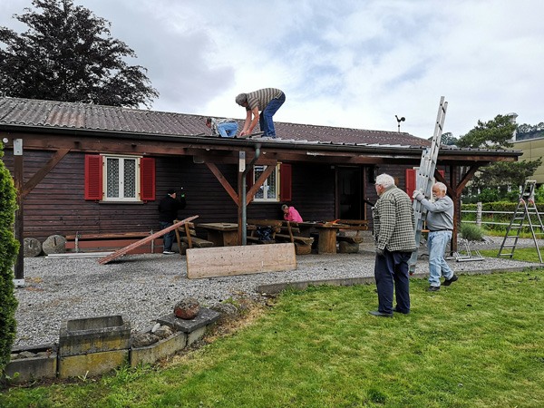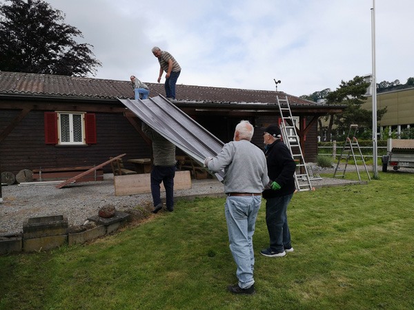 Am 19.Mai 2023 frühmorgens trafen sich fünf Vereinsmitglieder beim Vereinshaus, um das vom Hagel beschädigte Vordach zu erneuern.
