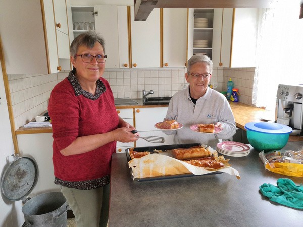 Für den Znüni war das Küchenteam Marlies Kuhn und Luisa Hochreutener Huber zuständig. Das Montageteam wurde mit feinen Wurstweggen und Getränken verpflegt.