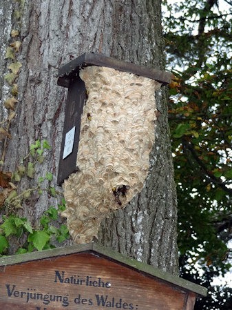 Gigantisch dieses Nest...Hornissen sind erstaunlich friedfertige Tiere, und scheuer als die Honigbienen, und ihr Stich nicht gefährlicher als der Bienen oder Wespenstich...